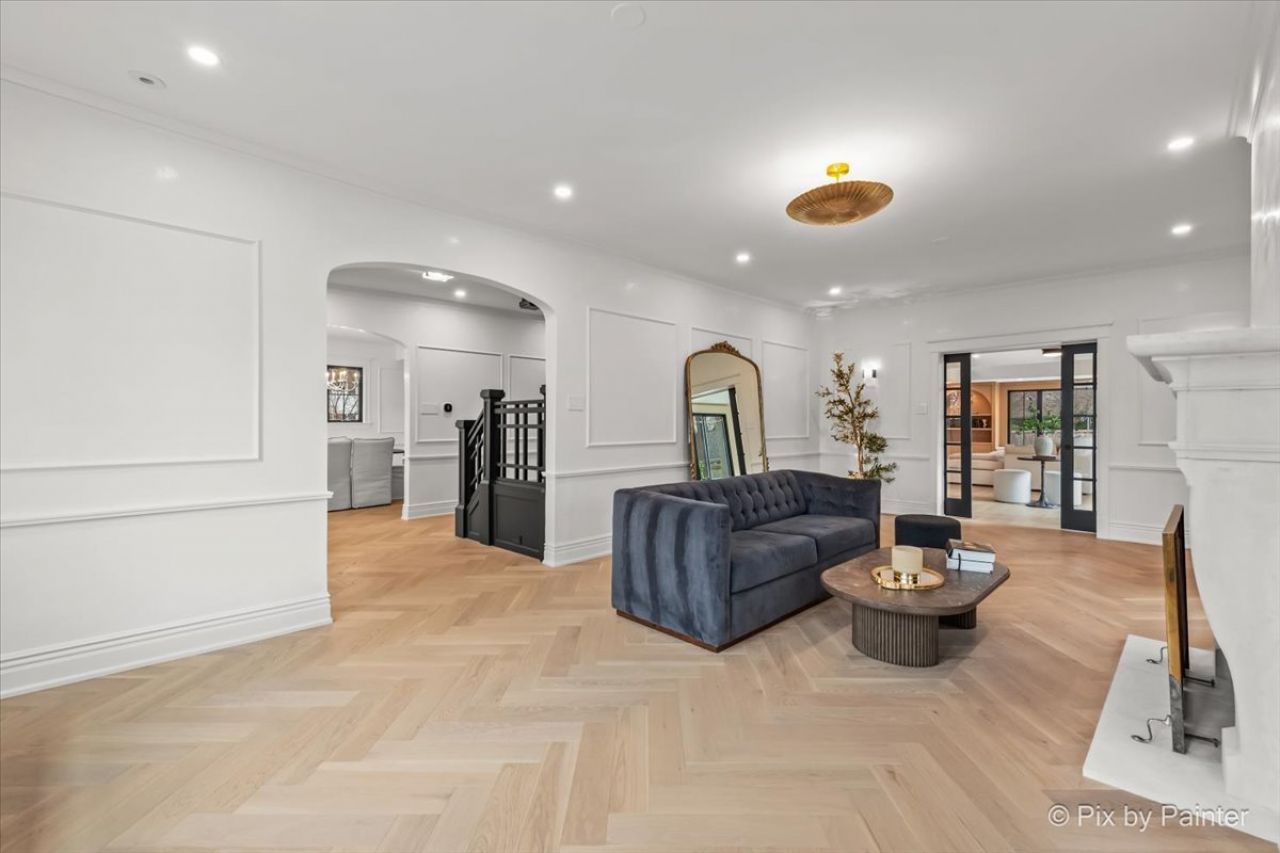 Meticulously renovated, this exceptional Winnetka home blends timeless charm with modern luxury. The five-bedroom, four-and-a-half-bath home features thoughtfully curated details throughout. Ideally situated near the lake, train, schools, parks, and downtown. The interiors have been fully reimagined with high-end finishes throughout, including custom white oak herringbone flooring on the main level, new interior doors, Lutron lighting, and Venetian plaster accents. The living room is anchored by a custom limestone gas fireplace, while the dining room is filled with natural light. A dedicated office provides a functional workspace on the main level. The chef's kitchen is a centerpiece of the home, designed for both style and function. It features custom cabinetry, under-cabinet lighting, 14-foot island with leathered quartzite dolomite countertops, Thermador appliances and Zephyr beverage center. Upstairs, the bedrooms feature custom closets and spa-quality bathrooms with heated floors and Porcelanosa tile. An upstairs den, filled with natural light, adds a flexible living space. The primary suite includes a spa-inspired bath with a Mr. Steam shower, Aquabella soaking tub, Toto Neorest toilet, custom vanities, and frameless glass. The finished lower level provides exceptional versatility, featuring a recreation room, full bath, additional bedroom, in-home hair salon, dedicated gym, and sauna. Outdoors, the fully fenced backyard has been professionally designed with landscaping, a bluestone patio, fire pit, and private putting green. Additional highlights include a two-car detached garage with EV-ready infrastructure, new exterior windows, custom mudroom cabinetry, and marble tile in the mudroom and laundry room. An exceptional blend of timeless elegance, modern functionality, and location.